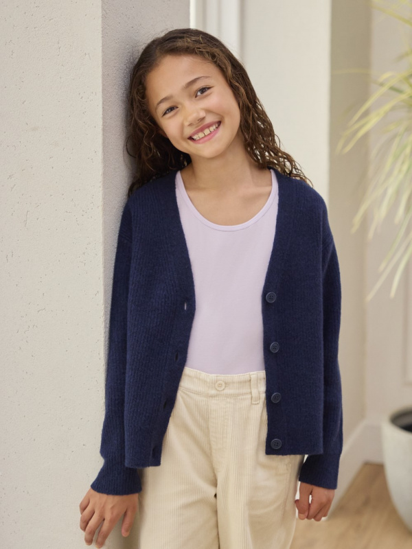 GIRLS SOUFFLE YARN V NECK CARDIGAN UNIQLO SG Very well made.