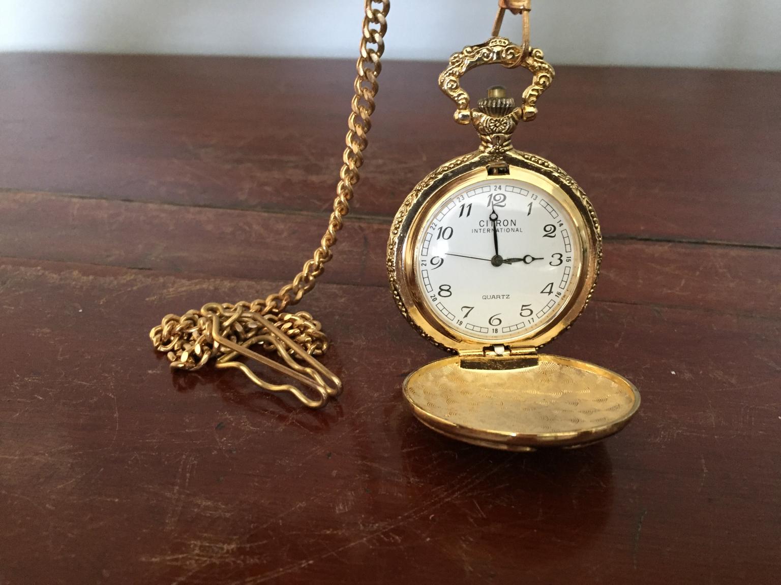 CITRON INTERNATIONAL QUARTZ Pocket Watch With Chain Battery C2 Very well made.