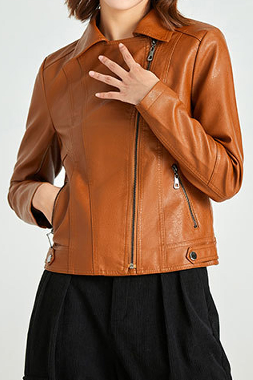 Womens Fashion Designer Leather Jacket Cross Zip Camel Very well made.