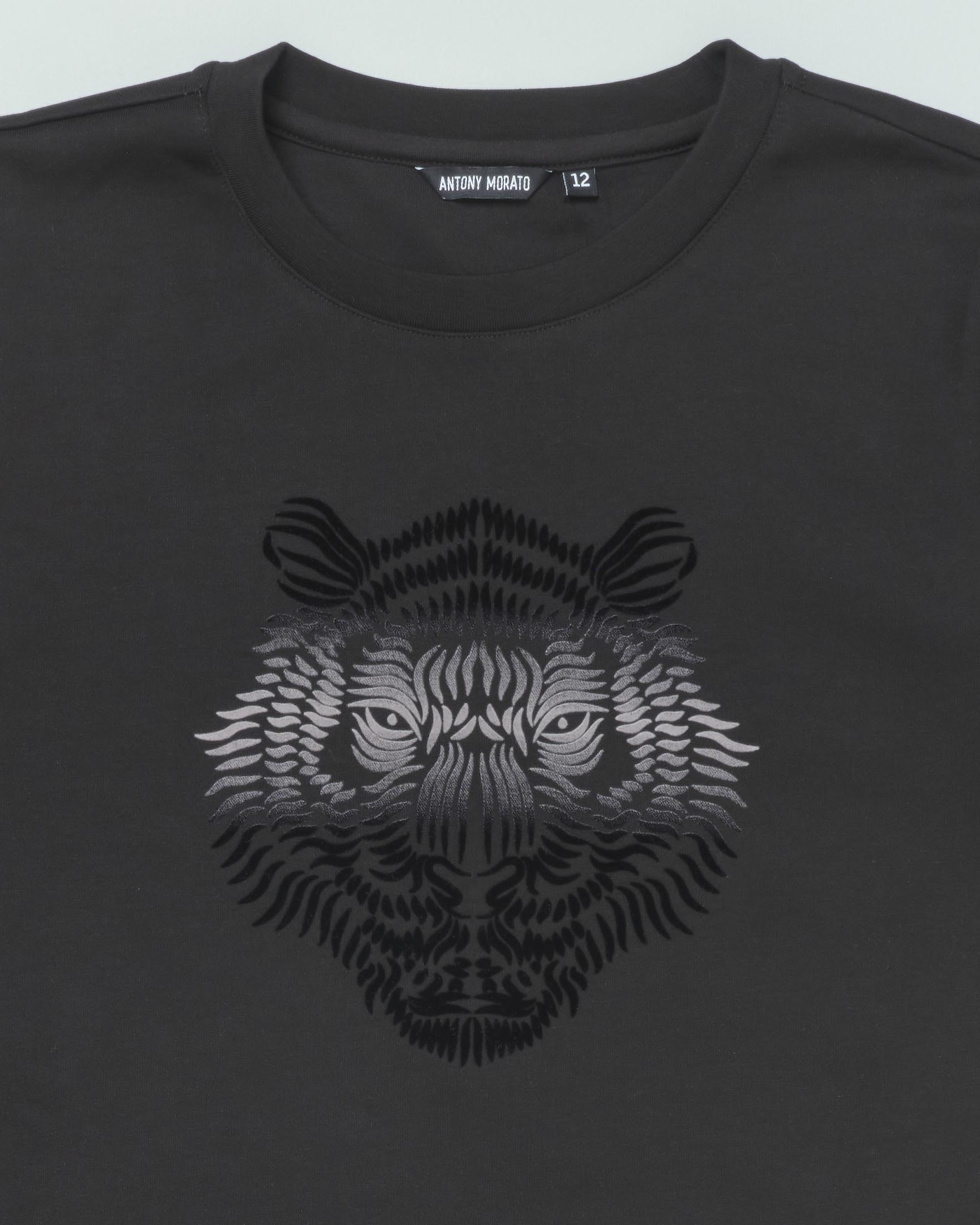 Felpa nera girocollo con ricamo tigre 10 16 anni Very well made.