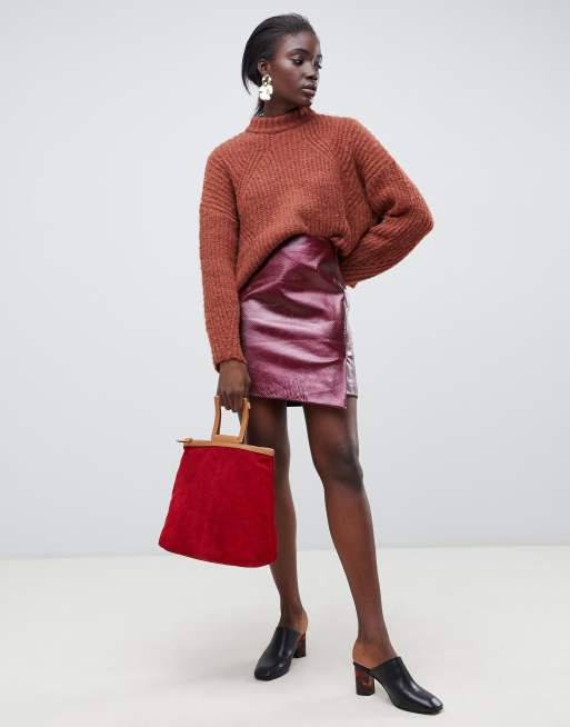 Selected Femme Gonna a portafoglio in pelle rossa con stampa Very well made.
