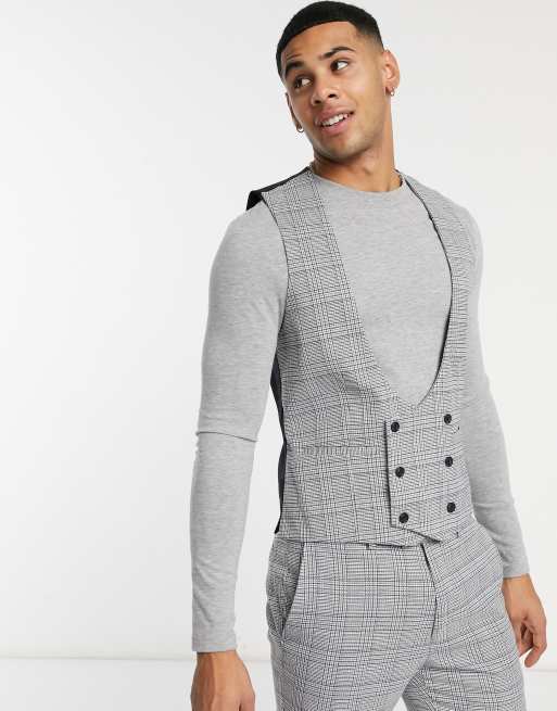 Topman double breasted suit waistcoat in grey check Very well made.