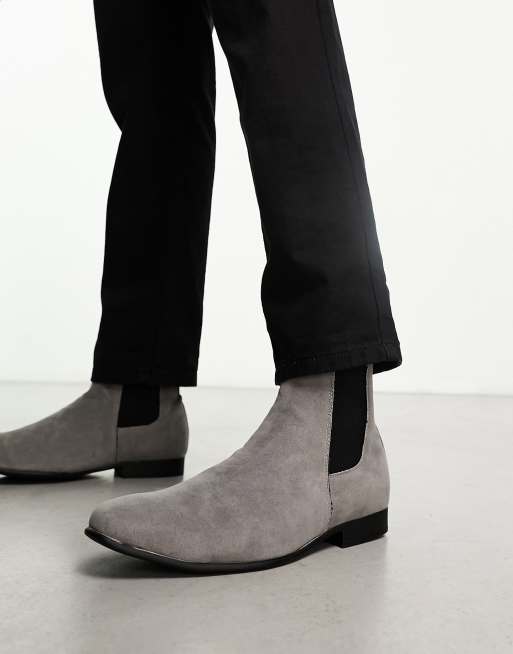 Truffle Collection smart chelsea boots in grey faux suede ASOS Very well made.