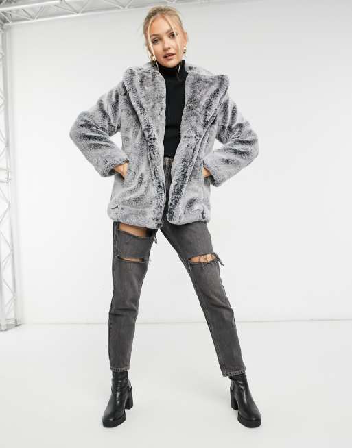 ASOS DESIGN maxi faux fur coat in grey Very well made.