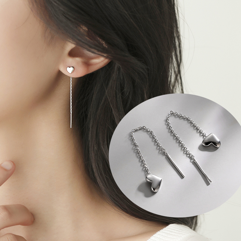 Fashion Heart Long Dangle Earrings Women Girl Korea Love Ear Line Very well made.