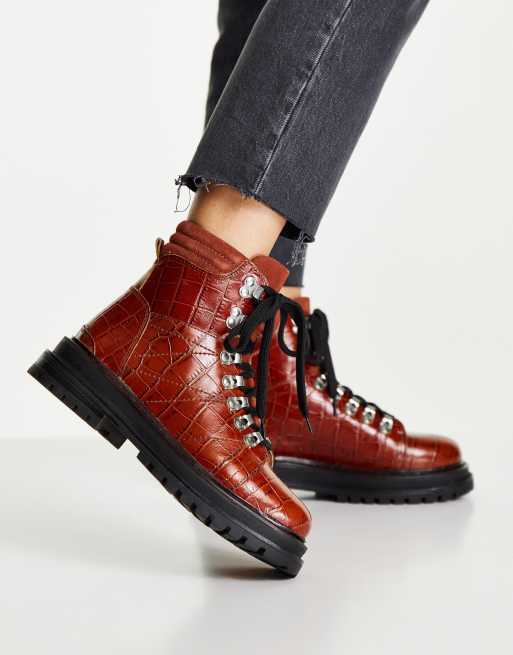 ASOS DESIGN Adrift chunky lace up hiker boots in tan croc Very well made.