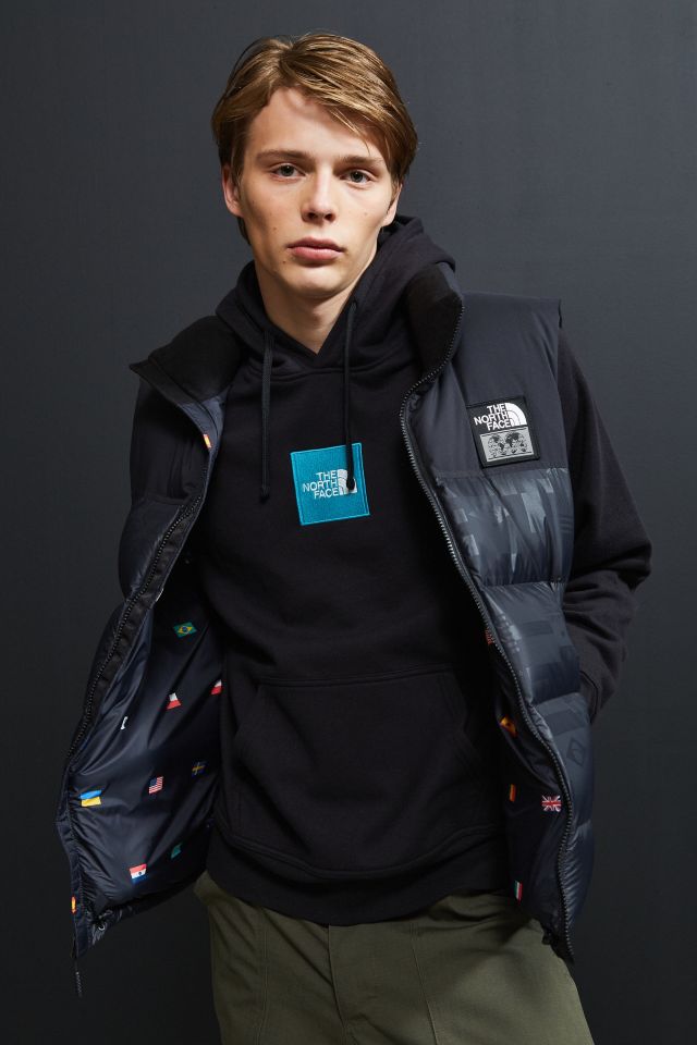Pre owned nf0a3bzf1tu Womens Tnf Ic Nuptse Vest Black Flag Print Very well made.