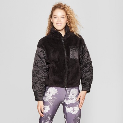 Womens Sherpa Full Zip Jacket with Quilted Sleeves JoyLab Black Very well made.