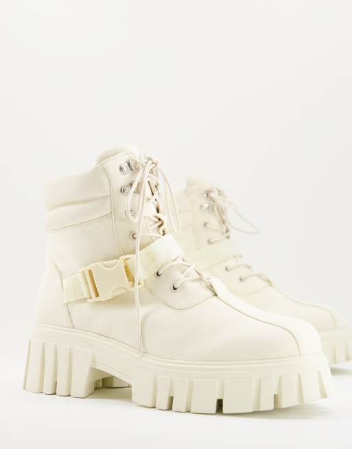 Public Desire man kash lace up buckle hiker boots in cream Very well made.