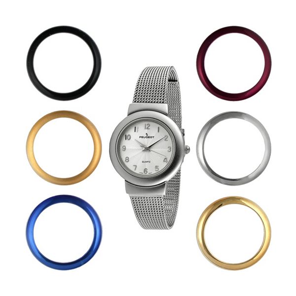 Peugeot Two Tone Mesh Watch Interchangeable Bezel Set 642 Very well made.