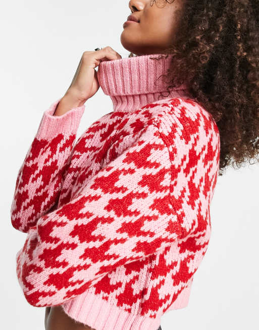 Bershka Dolcevita in maglia spessa rosa con motivo pied de poule Very well made.