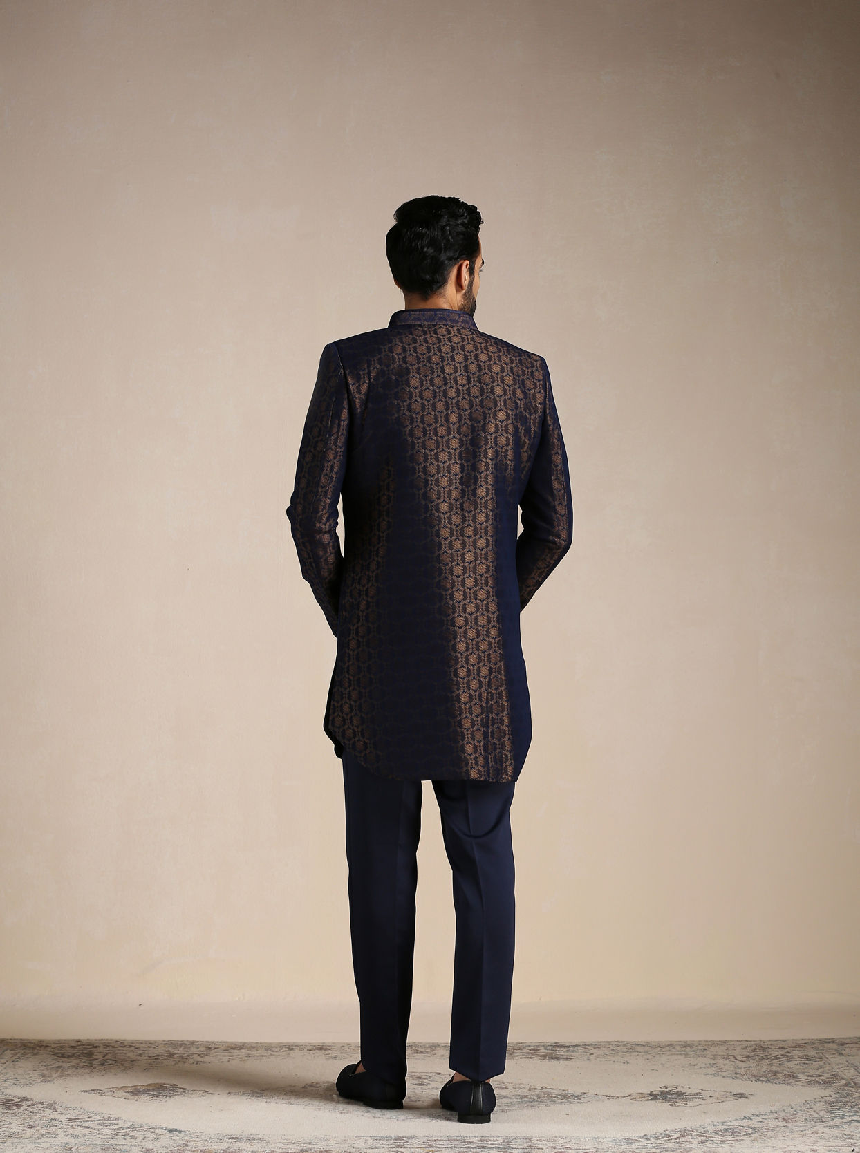 Buy Navy Blue Self Patterned Indo Western Set Online in Canada Very well made.