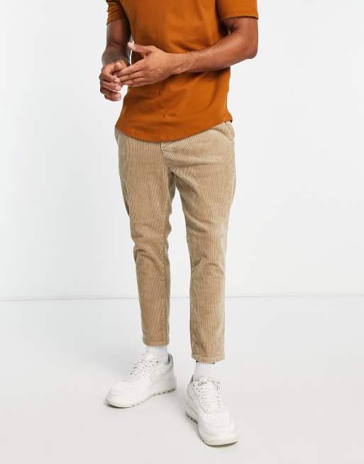 Only Sons elasticated waist tapered cropped cord pants in beige Very well made.