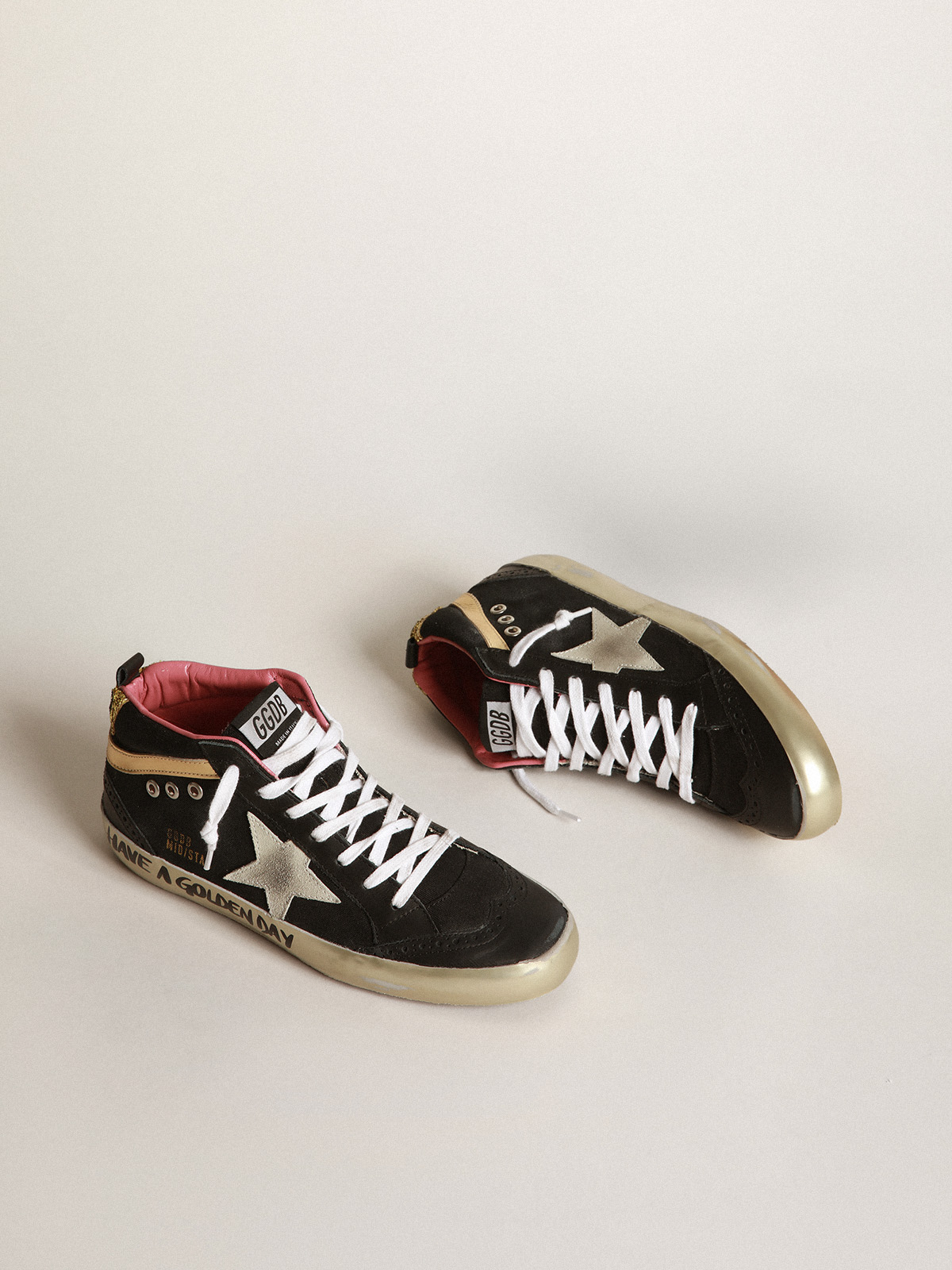 Black Mid Star sneakers with gold coloured inserts and glitter Very well made.