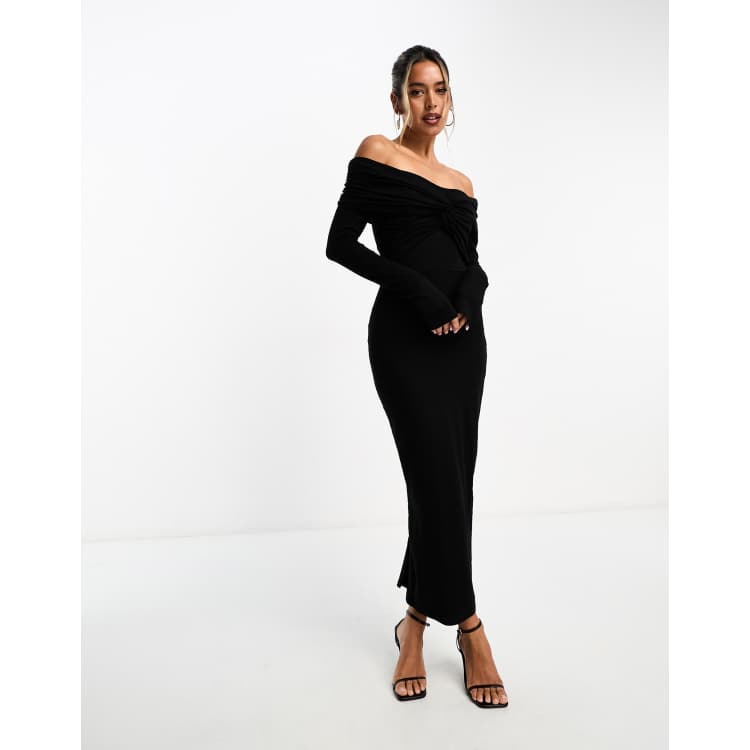 ASOS DESIGN off shoulder twist midi dress with long sleeves in black Very well made.