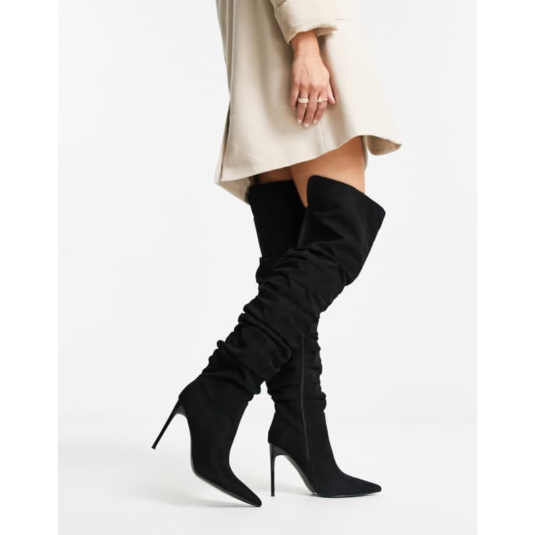 ASOS DESIGN Kingdom heeled ruched over the knee boots in black ASOS Very well made.