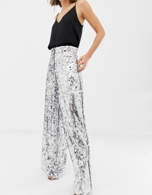 Esclusiva In The Style Tall Pantaloni a zampa neri in paillettes Very well made.