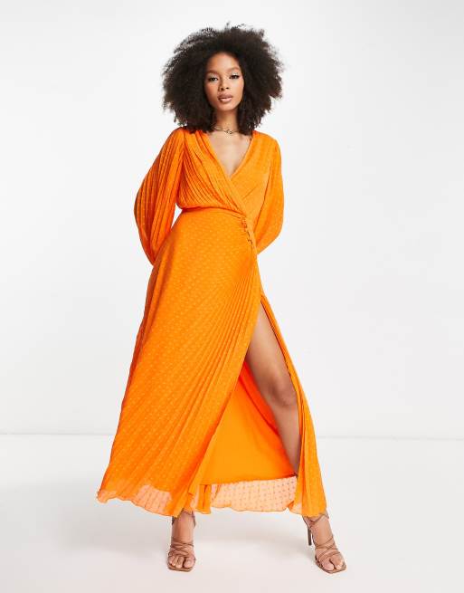ASOS DESIGN Vestito lungo a pieghe arancione a portafoglio con bottoni Very well made.