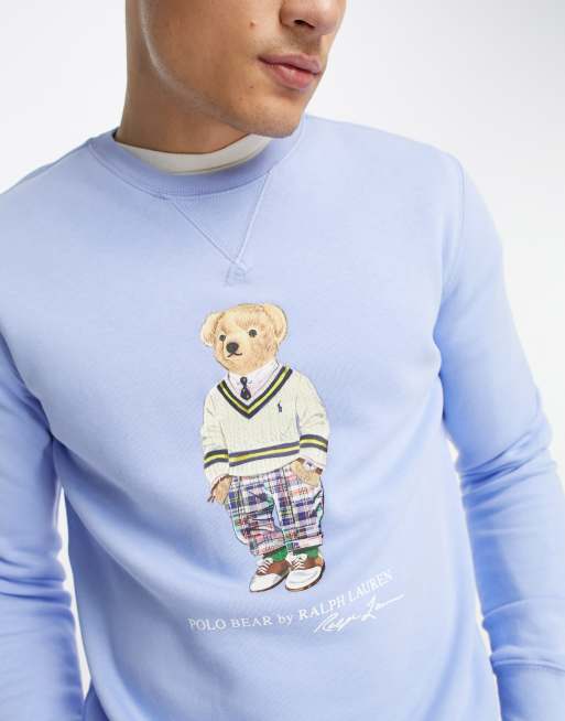 Polo Ralph Lauren preppy bear print sweatshirt in light blue Very well made.
