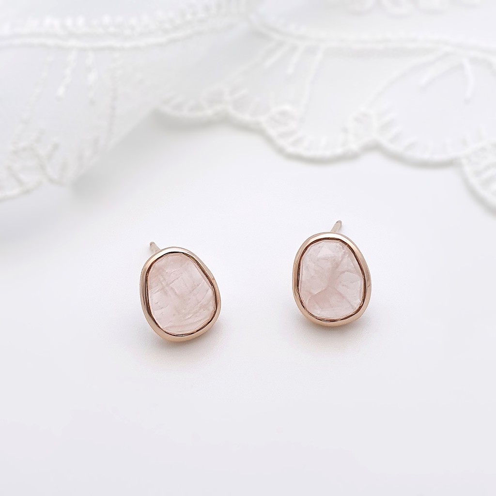 Mandy Romantic Rose Quartz Gemstone Stud Earrings 14K Rose Gold Very well made.
