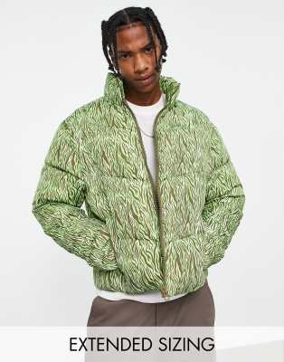 ASOS DESIGN puffer jacket in lime tiger print Green 36.00 Closer Very well made.