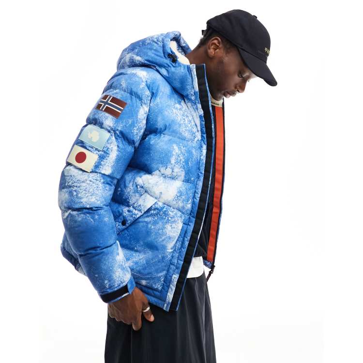 Napapijri Raspeball puffer jacket with logo patches in snow print Very well made.