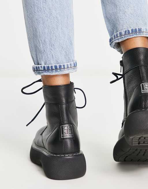 Steve Madden Wanny lace front chunky boots in black leather Very well made.