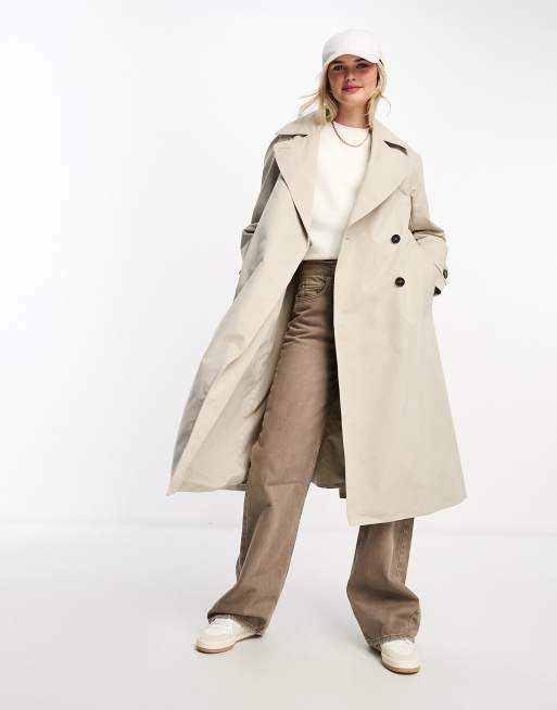 Pull Bear belted oversized trench coat in stone Very well made.