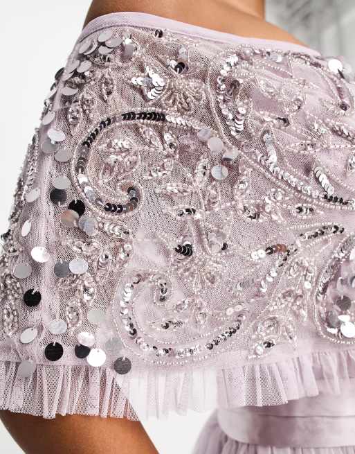 Beauut Petite Bridesmaid bardot tiered maxi dress in lilac Very well made.