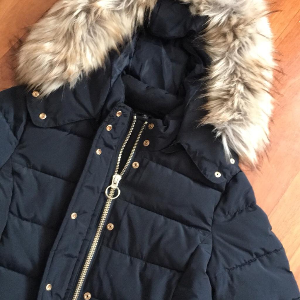 TOPSHOP LADIES PUFFER Jacket Navy Faux Fur Trim Size 6 17.00 Very well made.