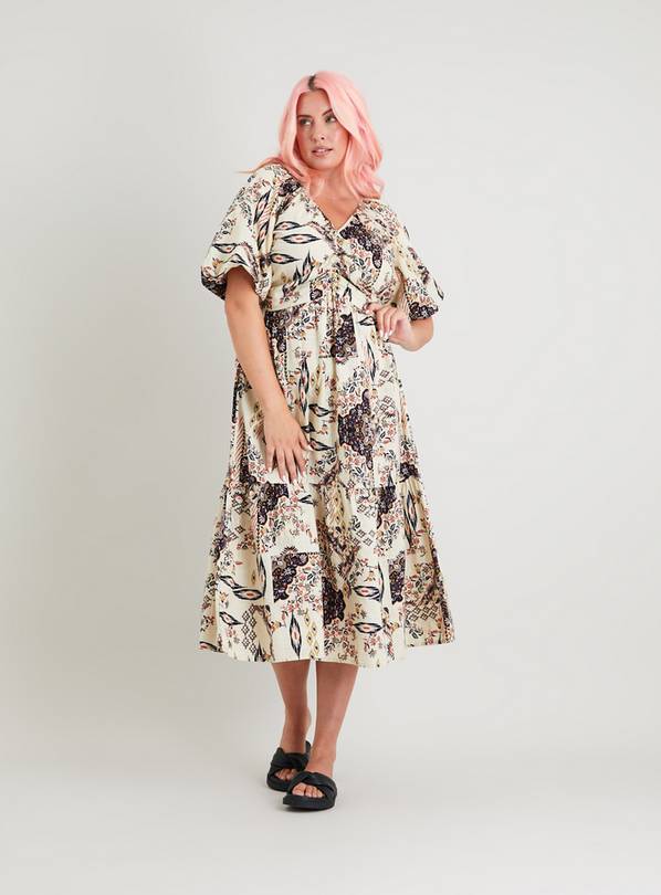 Buy Ikat Print Puff Sleeve Woven Midi Dress 14 Dresses Tu Very well made.