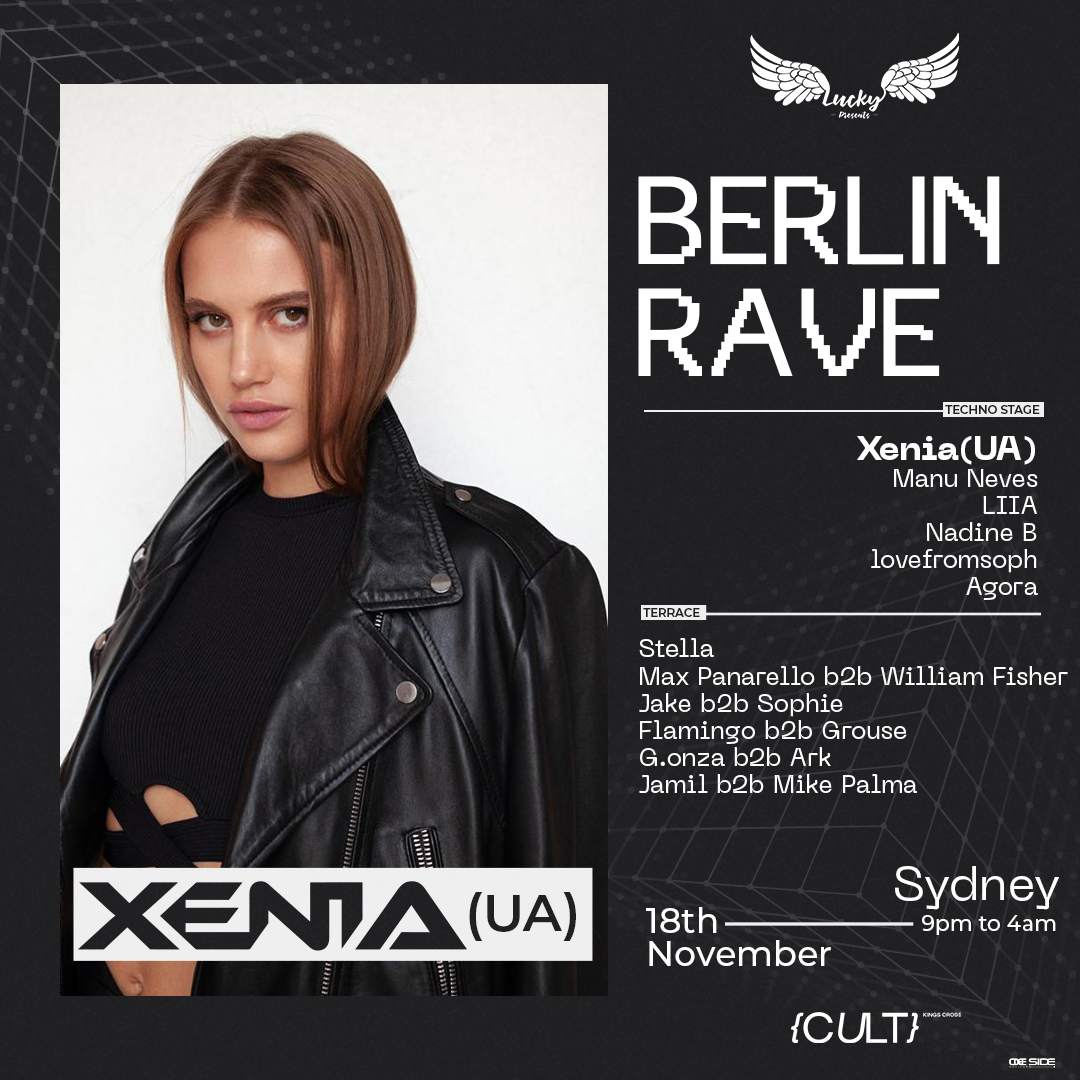 Lucky presents Berlin Rave ft Xenia UA at Cult Nightclub Sydney Very well made.