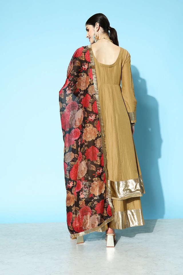 Buy Varanga Varanga Women Green Rust Printed Georgette Anarkali Very well made.