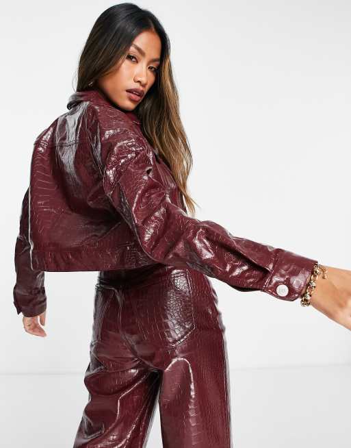 Vero Moda croc leather look cropped jacket co ord in port red ASOS Very well made.