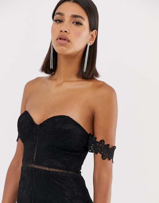Love Triangle Vestito nero lungo in pizzo con scollo a cuore e Very well made.