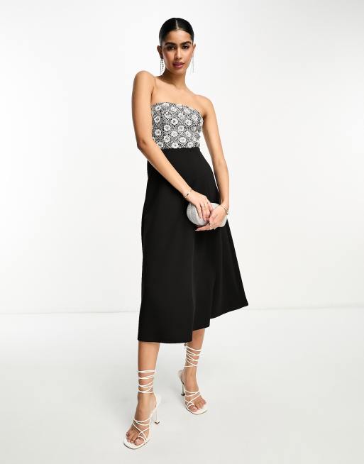 ASOS DESIGN Vestito midi skater a fascia nero decorato con paillettes argento Very well made.