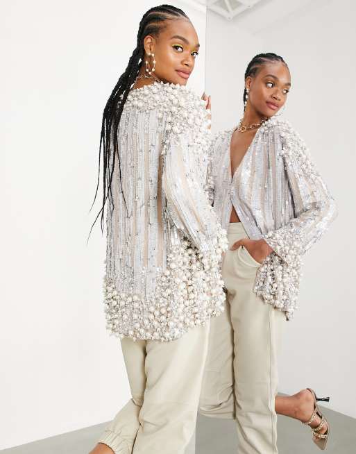 ASOS EDITION pearl embellished jacket in silver ASOS Very well made.