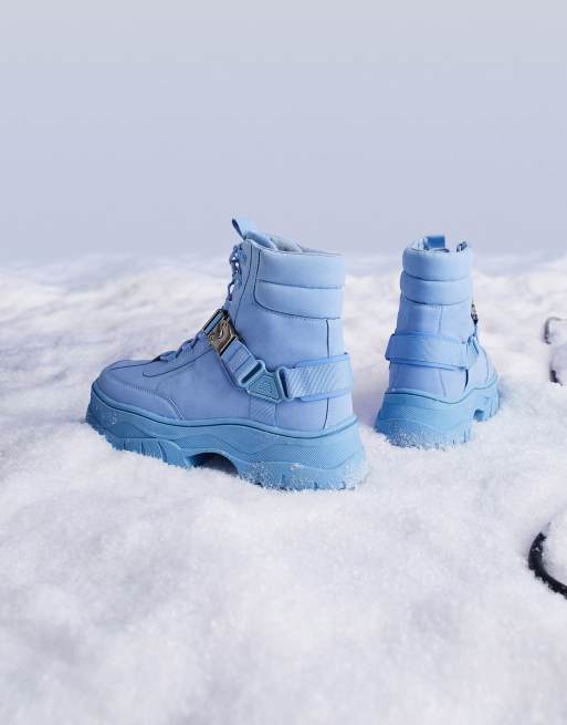 ASOS DESIGN lace up boots in blue faux suede on chunky sole ASOS Very well made.
