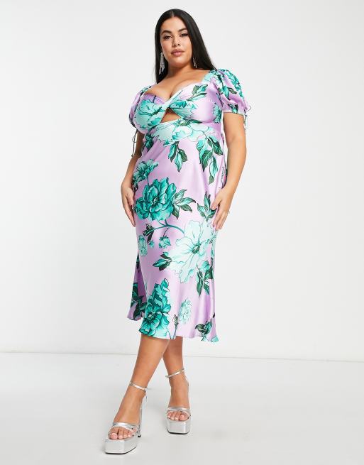 ASOS DESIGN Curve Vestito da giorno midi in raso lilla e verde a Very well made.