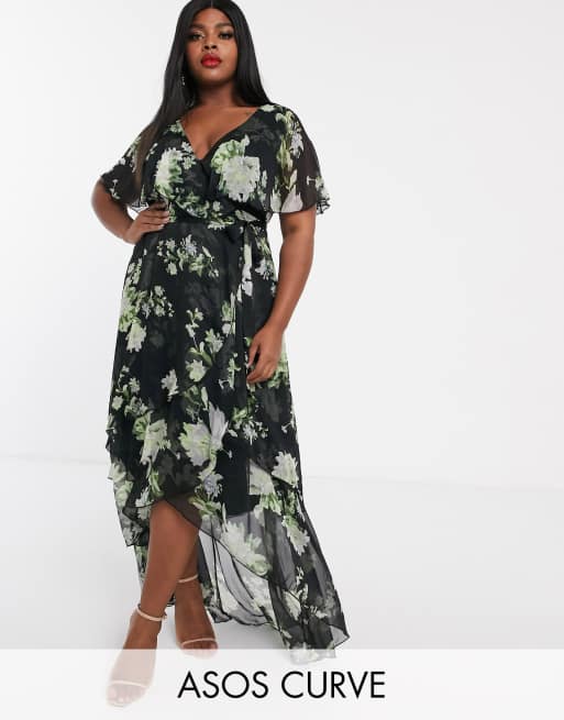 ASOS DESIGN Curve cape back dipped hem maxi dress in green floral Very well made.