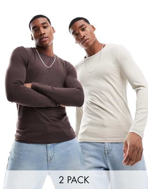 ASOS DESIGN 2 pack long sleeve muscle fit t shirt in brown and Very well made.