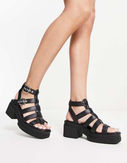ASOS DESIGN Highway Sandali neri con suola spessa e tacco Very well made.