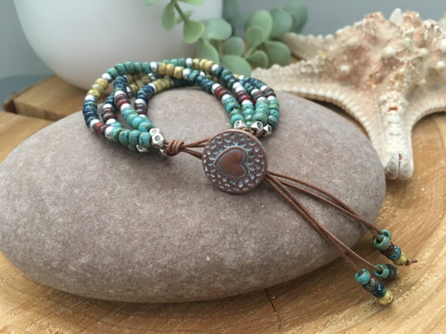 Leather 4 strand beaded Western Inspired boho a Folksy Very well made.