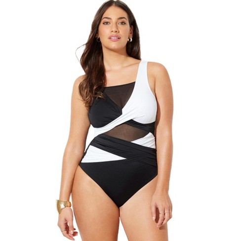 Swimsuits For All Women s Plus Size Mesh Colorblock Wrap One Piece Very well made.