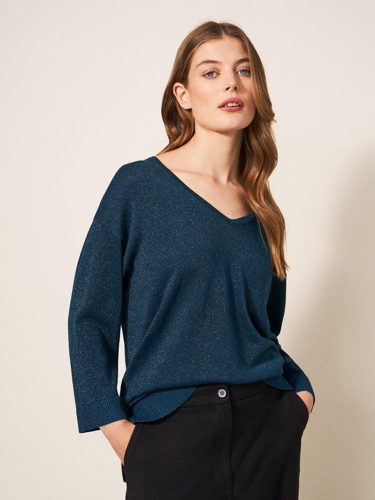 NIGHT SKY V NECK JUMPER in MID TEAL Very well made.