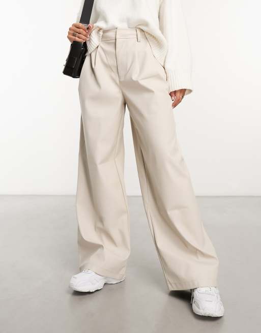 ASOS DESIGN faux leather wide leg dad trouser in winter white Very well made.