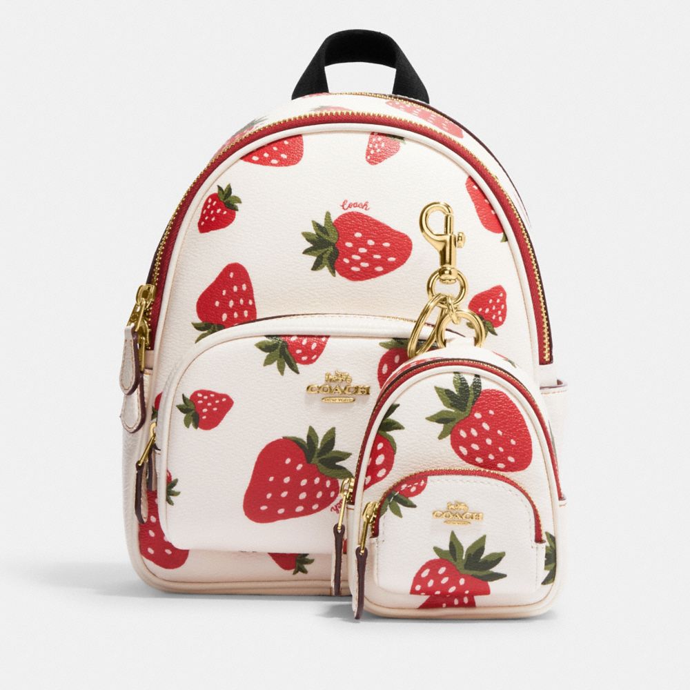 COACH Mini Court Backpack Bag Charm With Wild Strawberry Print Very well made.