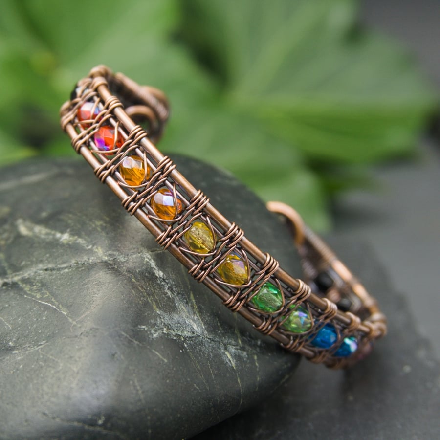 Rainbow Snake Wire Weave Copper Cuff with Facet Folksy Very well made.