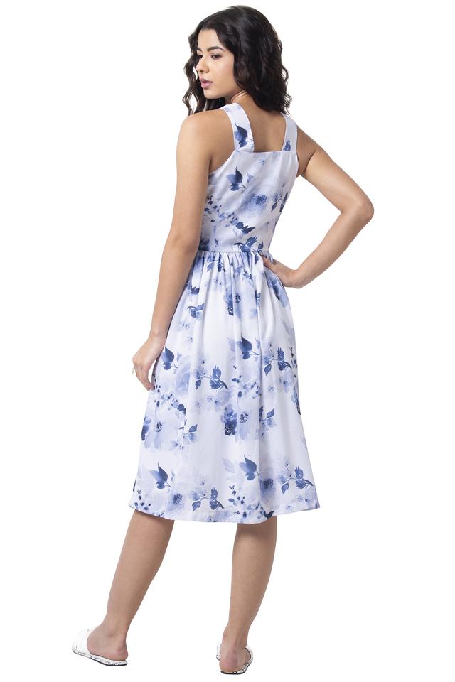 Buy FABALLEY Blue Floral Georgette Halter Neck Women s Midi Dress Very well made.