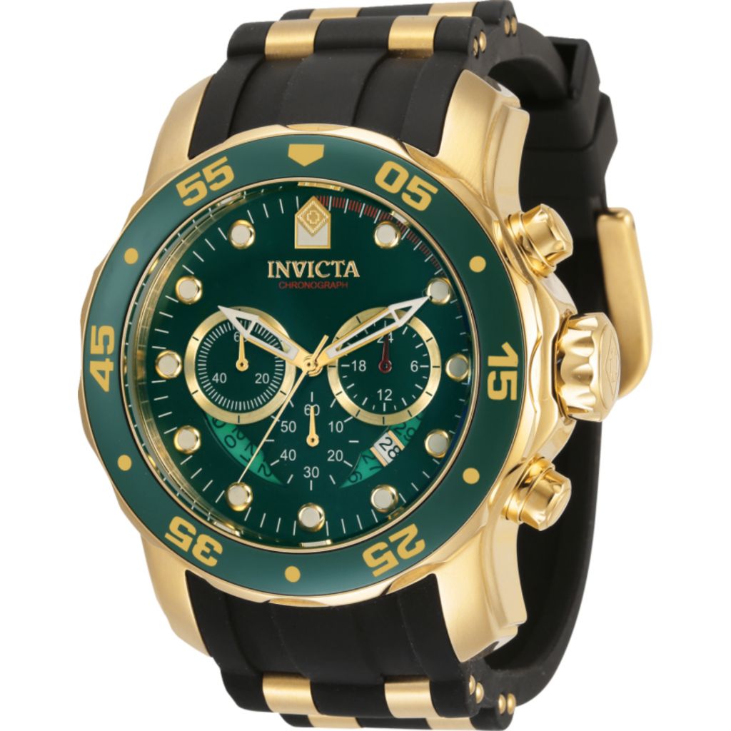 Invicta Men s 48mm PRO DIVER Scuba Chronograph Green Dial 18K Gold Very well made.